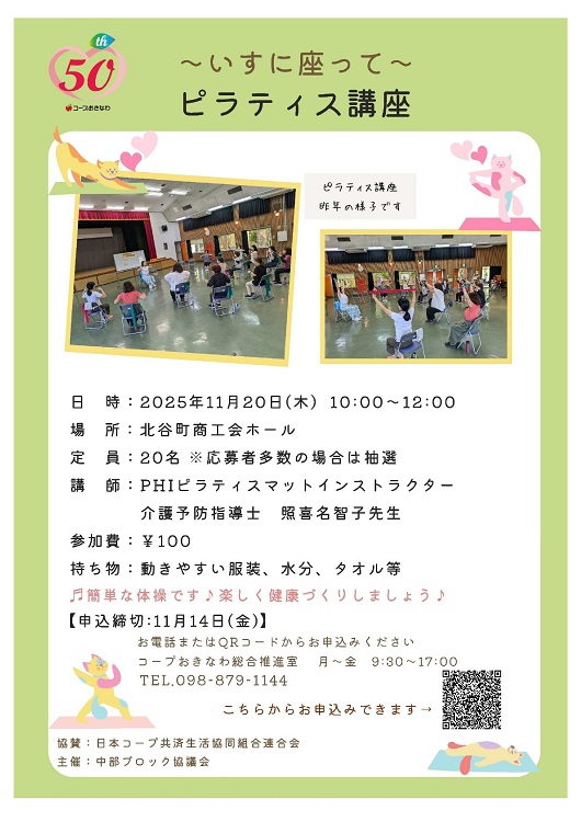 50周年企画「いすに座ってピラティス講座」【11月14日申込〆】