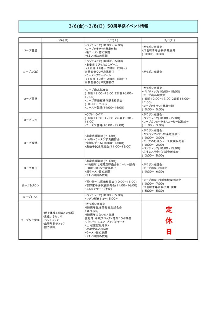 50周年祭を開催! 3月7日(土)・8日(日)各店